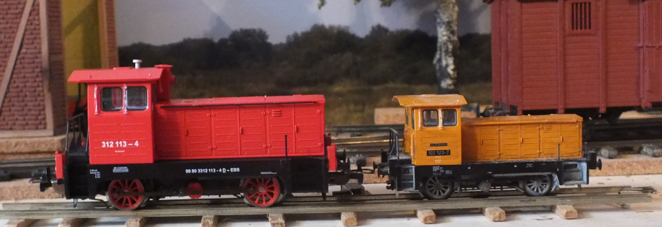 Hier im Größenvergleich mit der TT Version des gleichen Herstellers. Die Fahreigenschaften sind ausreichend. Der Antrieb wirkt nur auf die hintere Achse, die Vordere wird per Kuppelstange mitgenommen. Im direkten vergleich hat die H0 Version, durch viel Spiel der vorderen Achse, eine Art 3 Punkt Lagerung. Die Lok ist erstaunlich laut und verfügt dank Schwungmasse sogar über etwas Auslauf. Der Rahmen ist komplett aus Metall.
