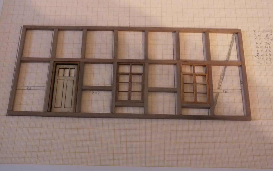 Weiter gings mit dem Gebäude bzw. Fassadenbau. Auch wenn es keinen Plan gibt, baue ich nach einem groben Plan im Kopf, den es ab und an mit Stellproben zu Überprüfen gilt. Heute entstand die Front eines weiteren Lenz "Einheitsbaus". Ich habe die Fenster/Türanordnung meinen Bedürfnissen angepasst. Auch wenn noch unvollständig, ging es vom Plan zur Wand doch recht schnell. Erkenntnisgewinn: Ich habe dahinten doch mehr Platz als Ich dachte... verdammt