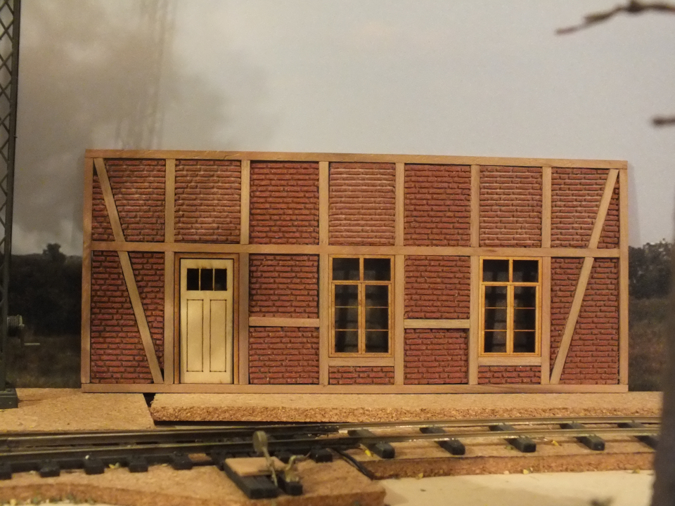 Dabei fiel mir bei letzteren nicht nur auf, dass ich schon im zu Grunde liegenden Plan einen Fehler gemacht hatte und das Gebäude zu hoch gebaut hab. Die obere Fachwerkfächer sind ca. 5mm zu hoch. Jetzt könnte man meinen, dass das nicht Auffällt. Tut es auch nicht, bis man es gemerkt hat... was bei der Zeichnung der Seitenwand passierte. Das ganze wurde Konstruktiv zwar erstmal berücksichtigt, aber so lassen möchte ich das trotzdem nicht. Zumal mir zeitgleich auffiel, dass der obere Querbalken an der Gebäudefront zu kurz ist und ich den Überhang fürs Dach auf einer Seite vergessen habe... (auf der anderen Seite war keiner vorgesehen, weil hier theoretisch ein Güterschuppen anschließen sollte und praktisch das Diorama endet). Zwei bis 4 Querbalken an der Front hatte ich so oder so aus Faulheit weggelassen... und dass genau auf der einsehbaren Seite die Balken für Stirn und Frontseite nicht passen (auf der anderen Seite passt's. Ick sollte mehr der Symmetrie huldigen...) ist dann auch geschenkt.