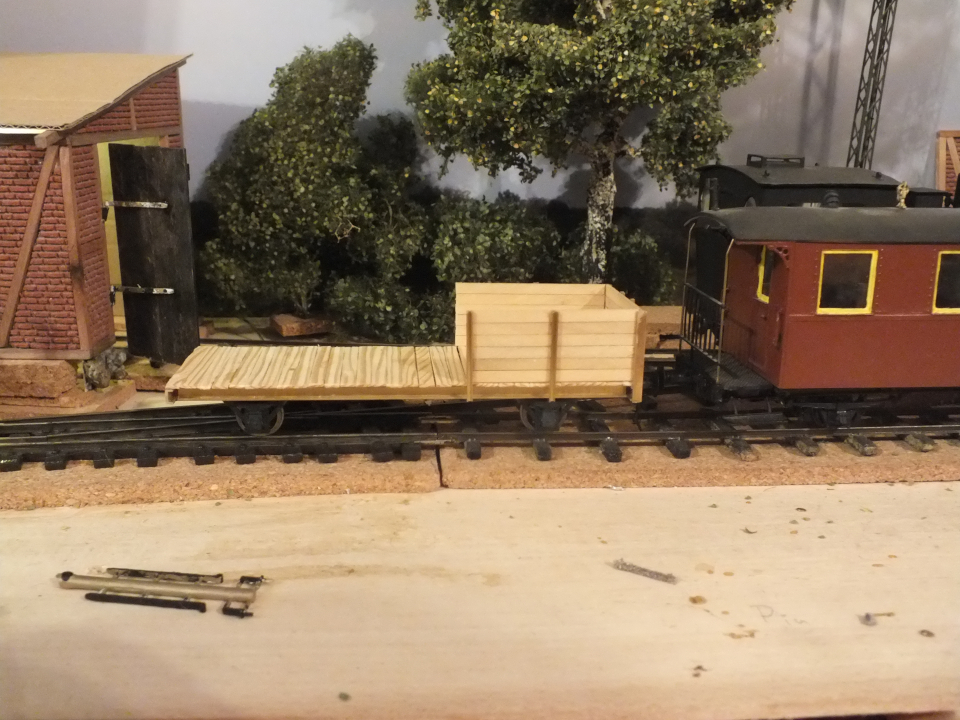 Da ich über die letzten Monate schon alles vorbereitet und eine Abwechslung vom Hausbau 1:45 brauchte, habe ich mich heute mal an die Umsetzung eines ungebremsten, offenen Wagens gemacht. Zur Anwendung kommen meine üblichen Baumaterialien: Messingprofile, Holz und ein - mehr oder weniger - Großserienfahrwerk zum Metzgern (in dem Fall ein Peco 0-16.5/NG7 Bausatz für ein Wagenfahrwerk). Das ganze ist als Versuch zu verstehen, bisher hat es keiner meiner Spur 0 eigenbauten in den regelmäßigen Einsatz geschafft :/