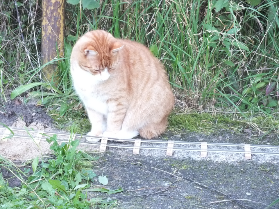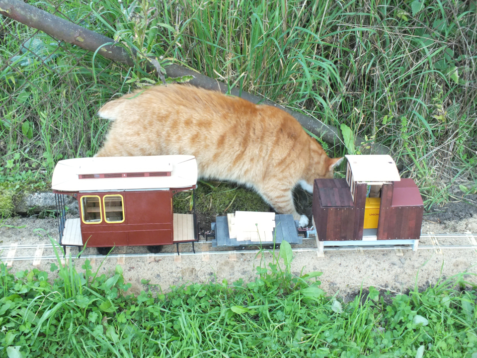 Zur ersten Fahrt im Zugverband kam auch die Katze zum ersten mal vorbei...
