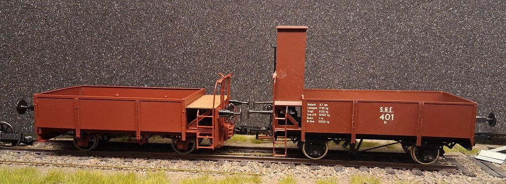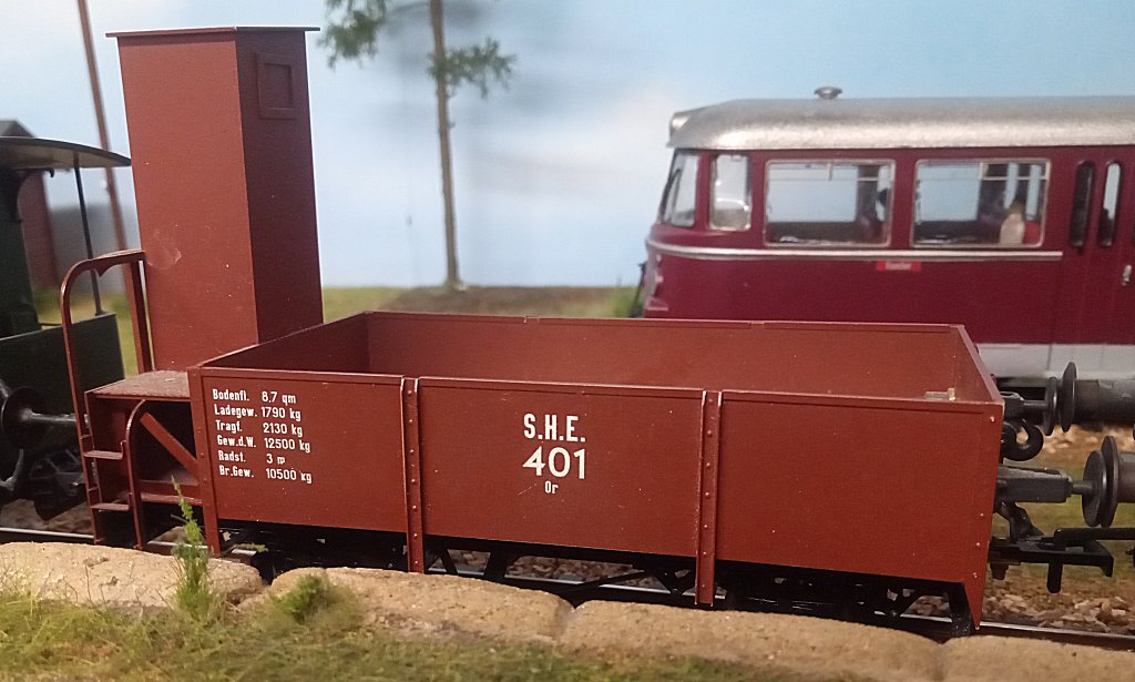 Parallel dazu habe ich aktuell leihweise einen Pufferwagen der SHE aus einem AHA-Bausatz, der mir von Rudi Ott zur Verfügung gestellt wurde und normalerweise auf der BAE beheimatet ist: