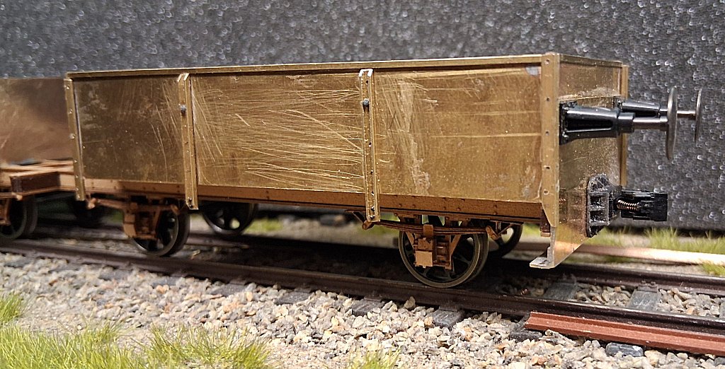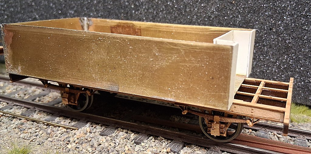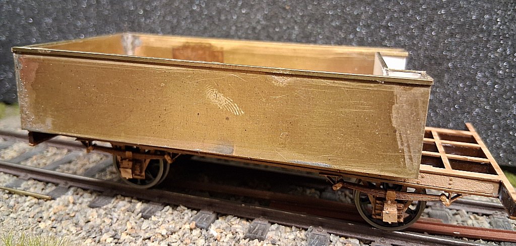Als nächstes wurde aus 0,5 mm Messingblech das Material für den ersten Wagenkasten zugesägt und dann miteinander verlötet.
