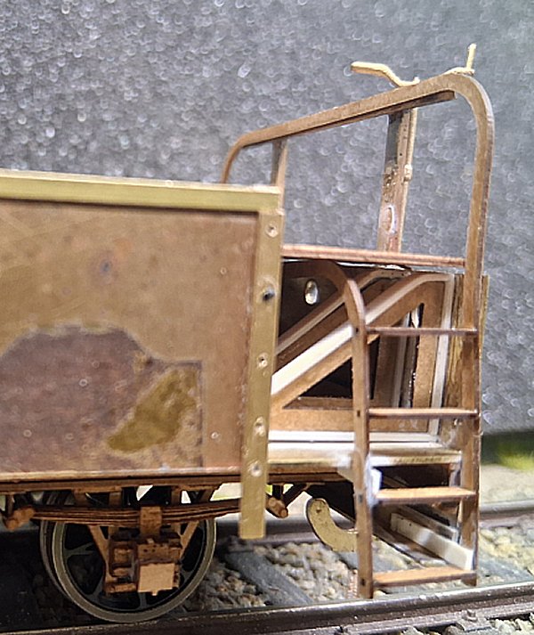 Das Bühnengeländer und die Trittstufen waren ursprünglich anscheinend geätzte Teile, bei denen die Trittstufen an den Ende umgebogen und zwischen die seitlichen Holme gelötet wurden.