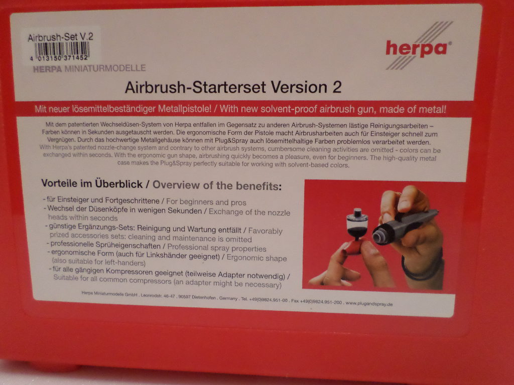 nachdem meine alte Herpa-Spritzpistole nach ca., 15 Jahren jetzt endgültig verschlissen ist und ich sie entsorgt habe, habe ich mir ein neues Airbrush-Set bestellt.