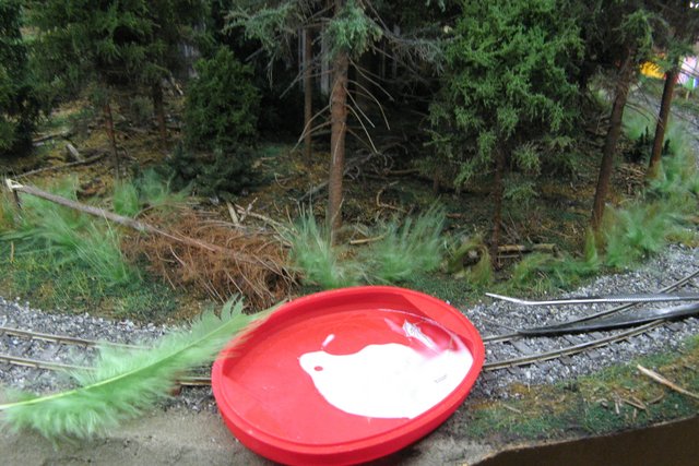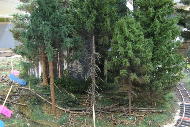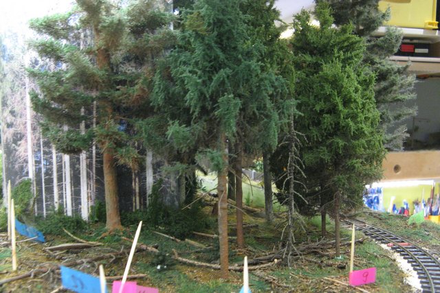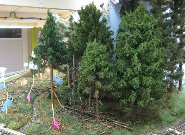 Den Baumstumpf und die Pilze setze ich erst später ein, da diese nur im vorderen Bereich hinkommen wo noch die Bäume fehlen.
