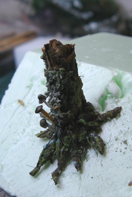Mit Vallejo-Farben und Pastell-Kreide wurden die Wurzeln dem Stumpf angepasst.