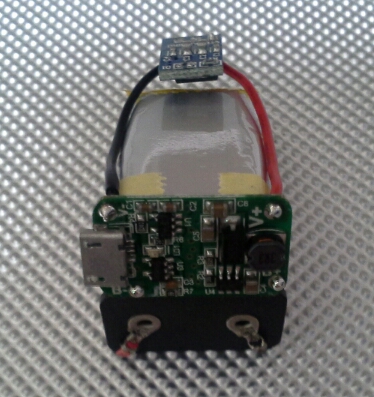 Zum Vorschein kommen dann zwei Lipozellen, die über eine integrierte micro USB Buchse geladen werden können. Aber die Platine hat auch noch einen Stepup Regler verbaut. Dieser macht aus den 3,7 bzw. 4,2 Volt knapp 9,5 Volt.