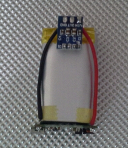 Hier ist der bei 9Volt Blöcken übliche Kontacktstecker entfernt und statt dessen eine Stepdown Platine angelötet worden. Der Stepper hat die Aufgabe, die für den WLan Chip notwendigen 3,3 Volt zu liefern.