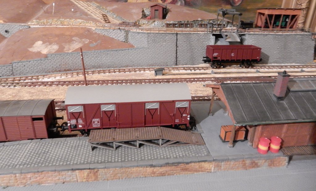 Zitat von Werner Martin im Beitrag #21Die Laderampe hat eine kleine Holzrampe (Busch) erhalten, damit auch aufgebockte Normalspurwagen entladen werden können.